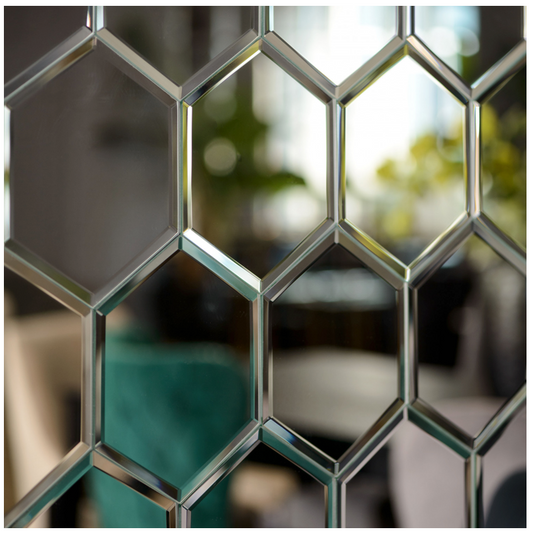 Mirror Wall Tiles Hexagonal Shape Beveled Box of 18 Tiles