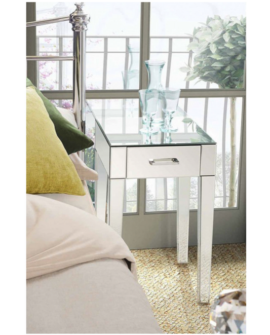 Mirrored bedside tables are a chic and sophisticated addition to any bedroom. These tables typically feature a mirrored surface on the top and sides, creating a stunning reflective effect that can make a room feel brighter and more spacious. Mirrored bedside tables come in a variety of shapes and styles, from sleek and modern to ornate and vintage-inspired. They can also feature additional design elements such as crystal knobs, beveled edges, or decorative trim. In addition to their aesthetic appeal, mirrored bedside tables can also be practical, with some models featuring drawers or shelves that provide extra storage space for books, magazines, or other bedside essentials. Overall, mirrored bedside tables can add a touch of glamour and elegance to any bedroom while also providing a functional and practical storage solution.