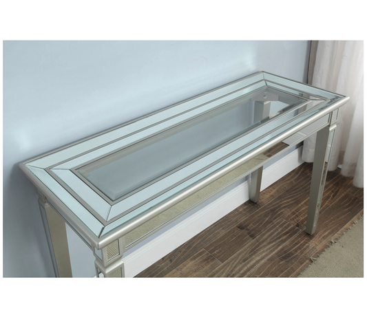 Grace Mirrored Console or Hallway Table Toughened Glass Top 4 Legs