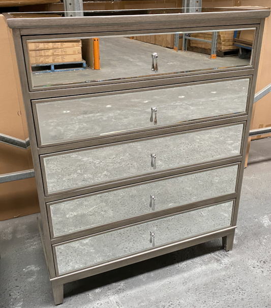 GATSBY Mirrored Tallboy - Antique Silver Brushed