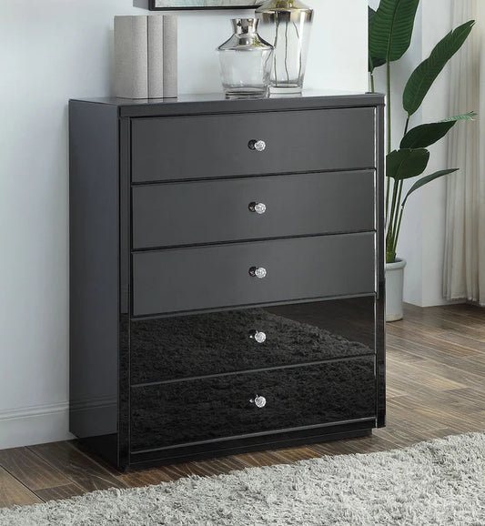 Roma Black Glass Mirror Tallboy 5 Drawer