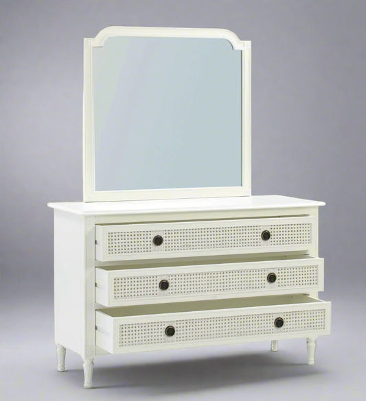BORDEAUX Dressing Table French Style White "Distressed" Finish with Rattan