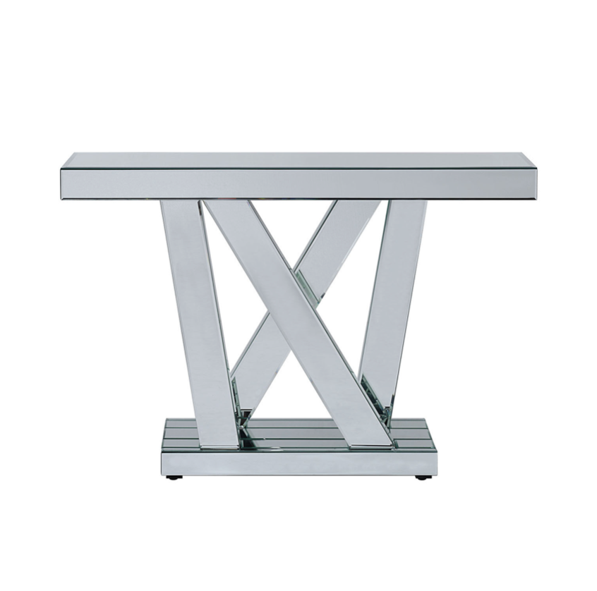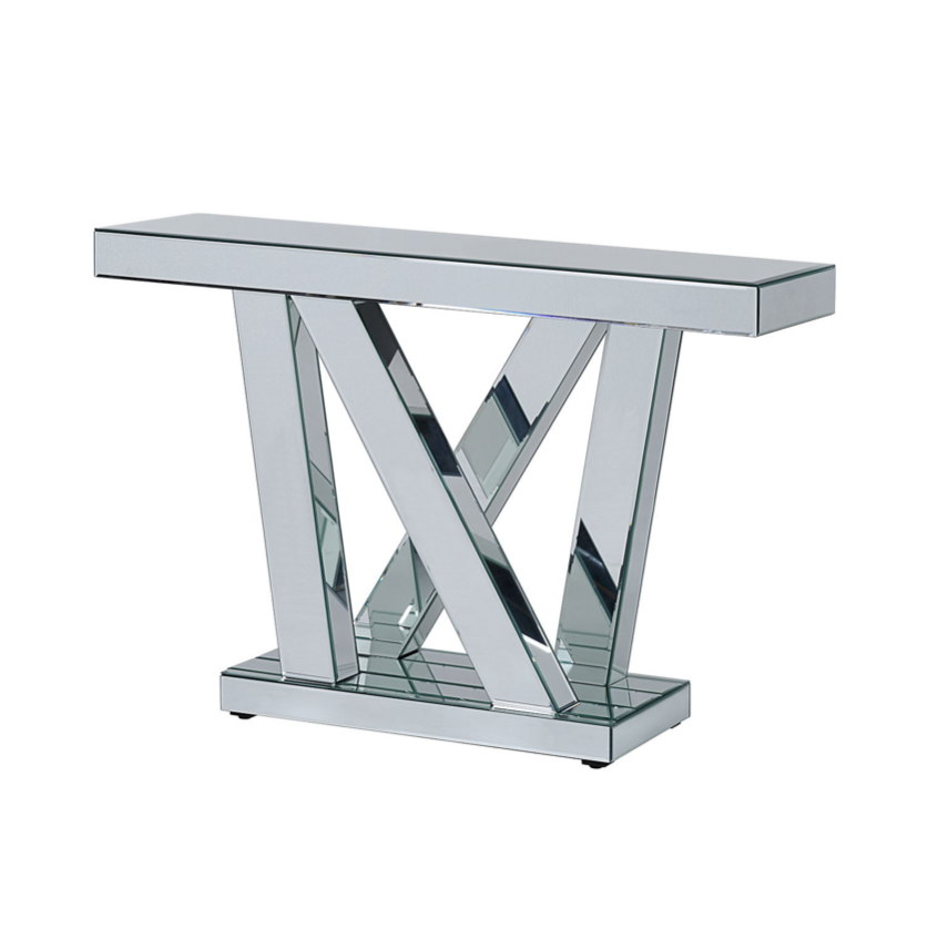 Lizetta Mirrored Console Hallway Table with Mirror Criss Cross Stand Sections