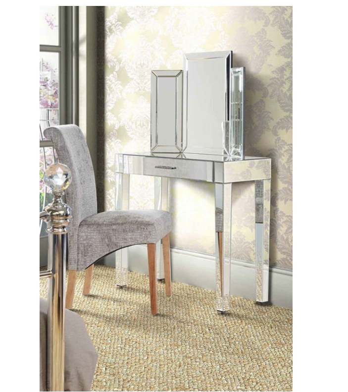 Zoe Mirrored Dressing Table Console 1 Drawer 4 legs Metal Handle