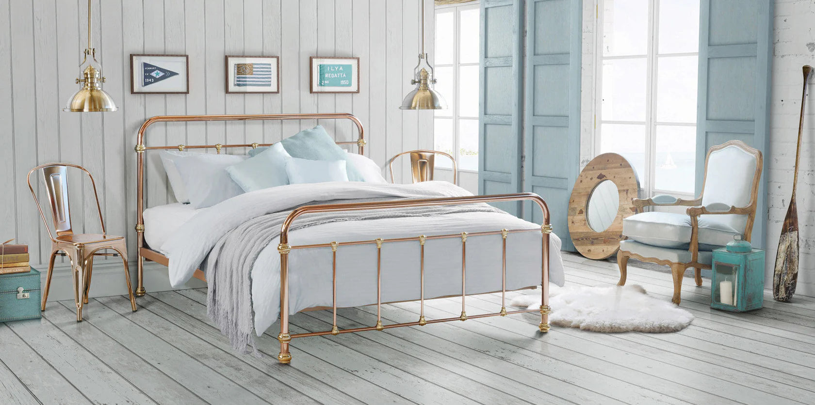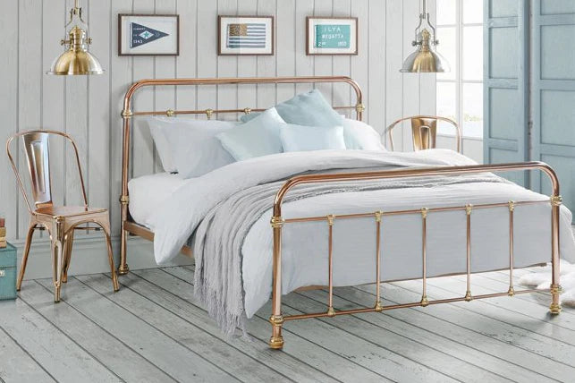 - The ORION copper & Brass plated bed is a beautifully crafted, yet minimalistic piece of bedroom furniture.