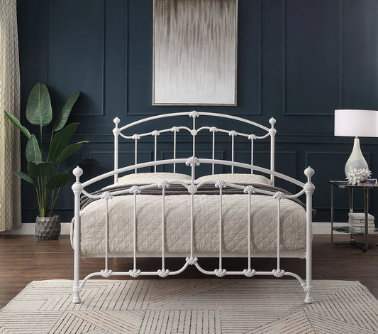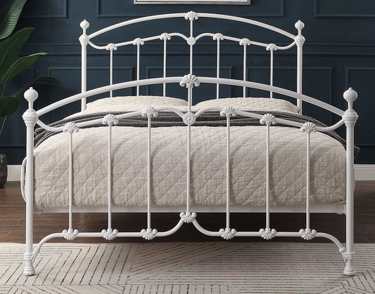 KATIA Queen Size Gloss White Cast and Wrought Iron Bed - Ex Display Boxed